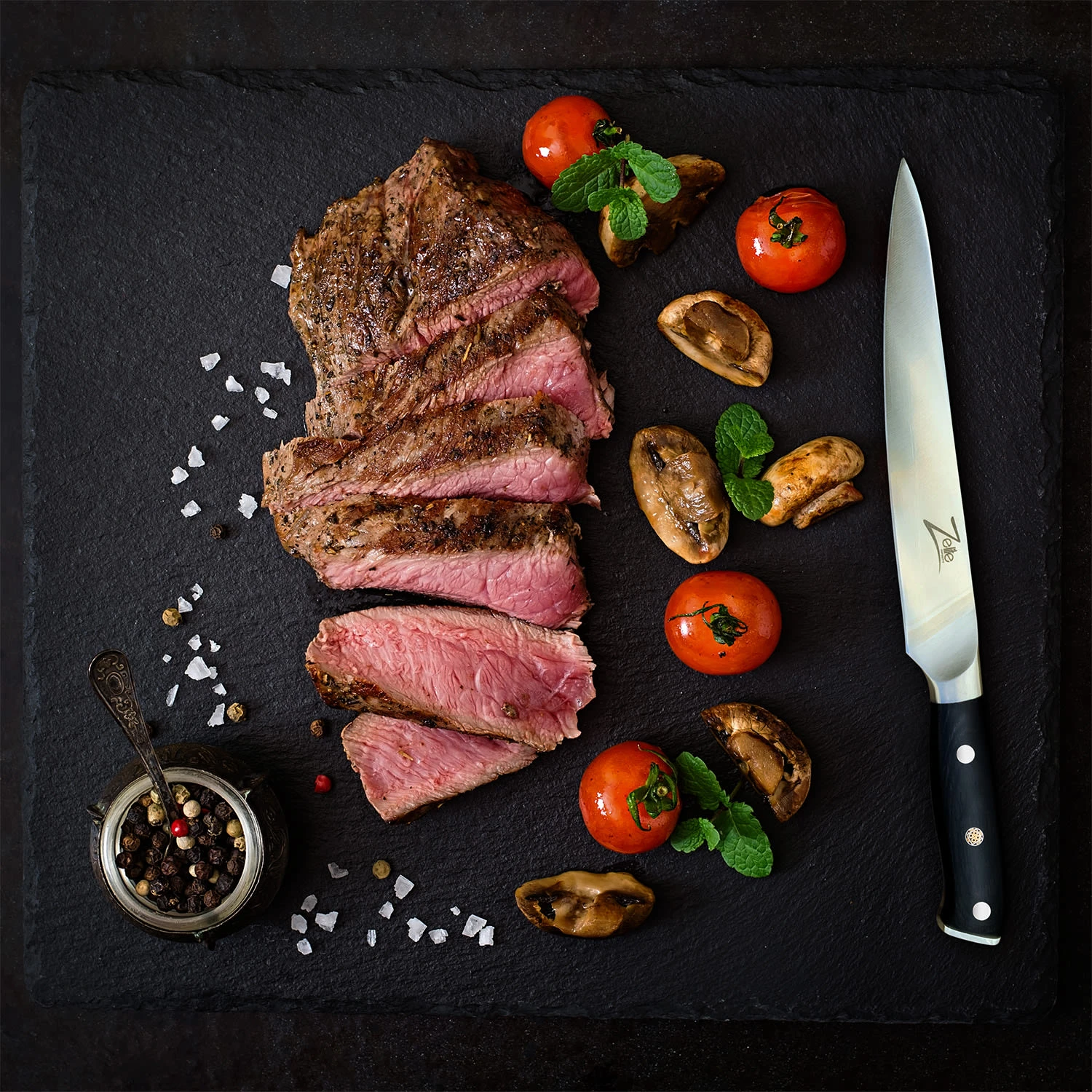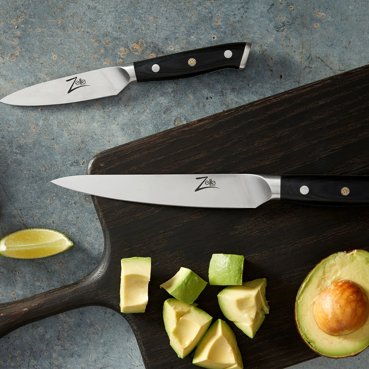 Das 6″ Küchenmesser ist aus deutschem Qualitäts-Edelstahl von Thyssenkrupp und schwarzem Pakkaholz gefertigt. Der ergonomische, dreifach vernietete Griff ist mit einer Mosaikniete versehen und liegt beim Schneiden gut und sicher in der Hand. Das 6″ Allzweckmesser von Zelite Infinity by Klarstein ist ein echter Alleskönner – vom Filetieren von Fleisch und Fisch über Schneiden von Gemüse und Obst bis hin zum Hacken von Kräutern und Nüssen – und damit ein unverzichtbarer Helfer in deiner Küche.
