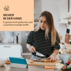 Die perfekten Messer für Hobbyköche, Küchenprofis und alle, die es gern scharf haben! Die Zelite Infinity by Klarstein Comfort Pro Messerreihe verbindet extreme Schärfe, hohe Qualität und einfache Handhabung mit einem edlen Look und macht Schneiden, Hacken oder Schälen ganz einfach. Die Klingen aus deutschem Qualitäts-Edelstahl von Thyssenkrupp sind hart, flexibel und rasiermesserscharf. Dank kanten- und fugenfreiem Übergang von Klinge zu Kropf sowie der ergonomischen Griffe mit perfekter Balance liegen sie gut in der Hand und ermöglichen perfekte Präzisionsschnitte.