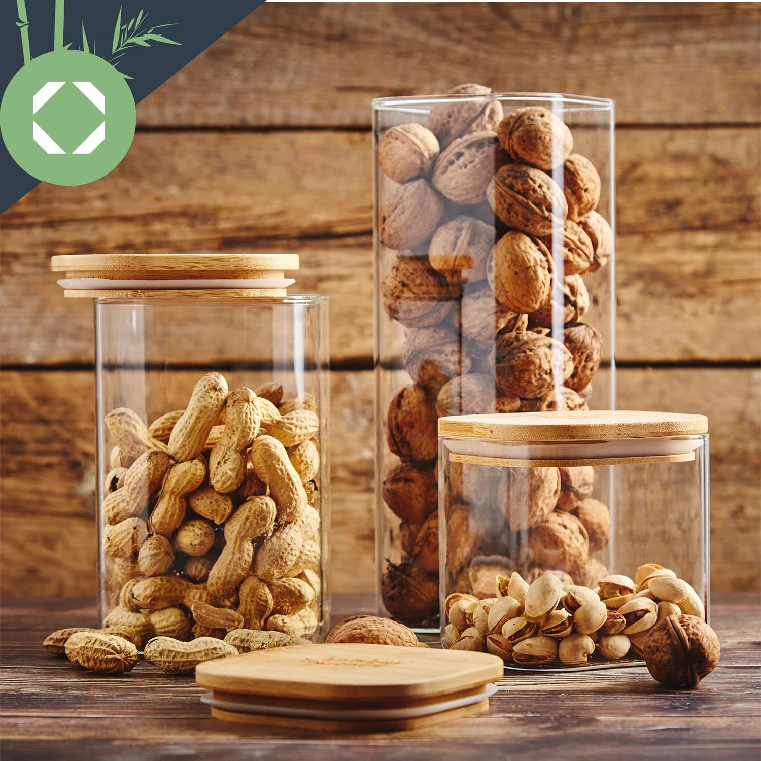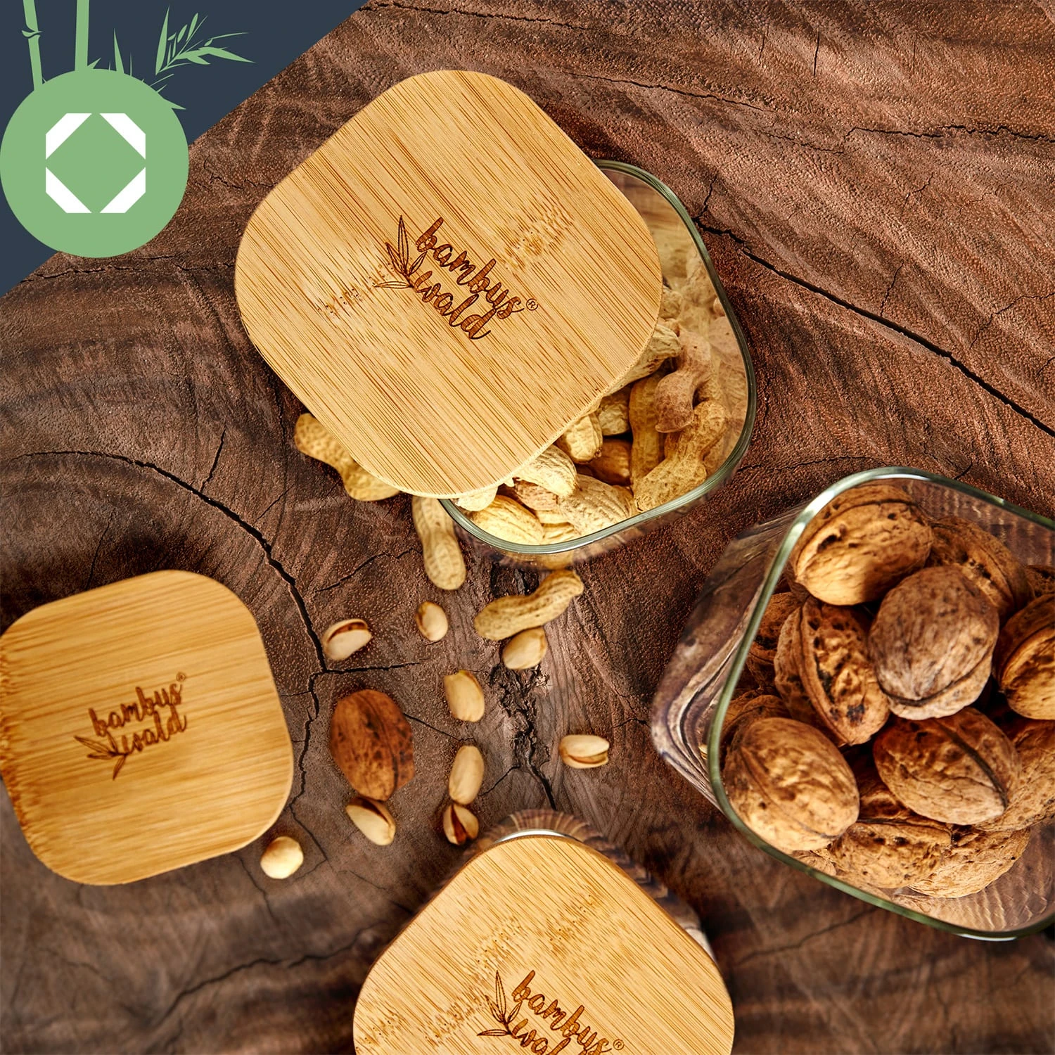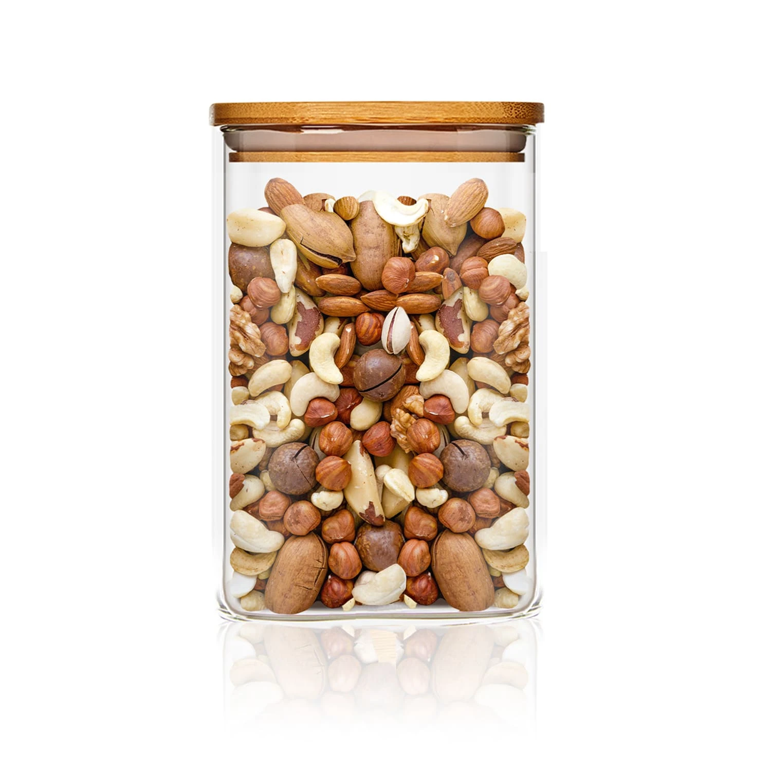 Eckiges Glas Mit Bambusdeckel Luftdicht Mit Silikonring 10x16x10 Cm 1200 Ml