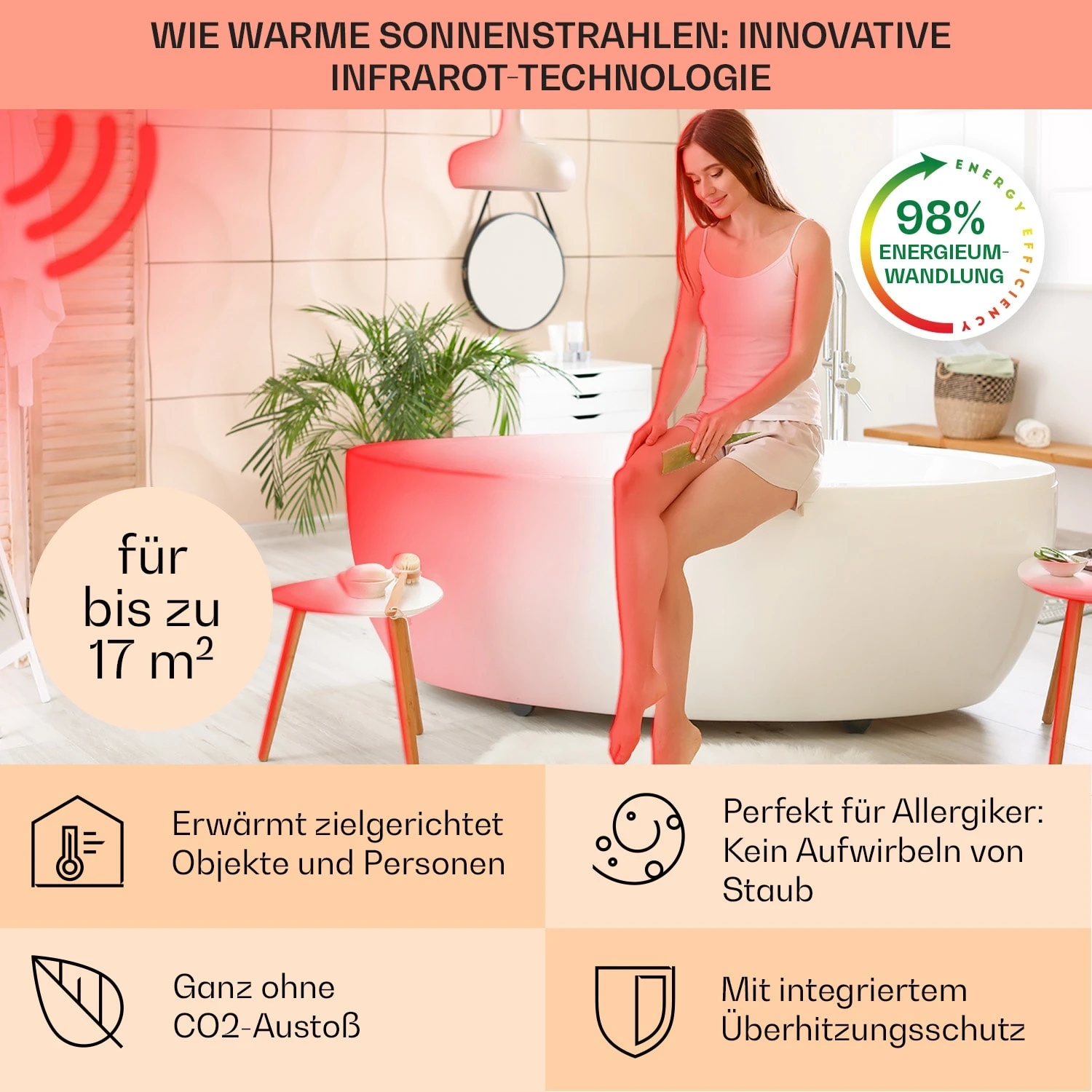 - keine Aufwärmphase, erzeugt sofort Wärme