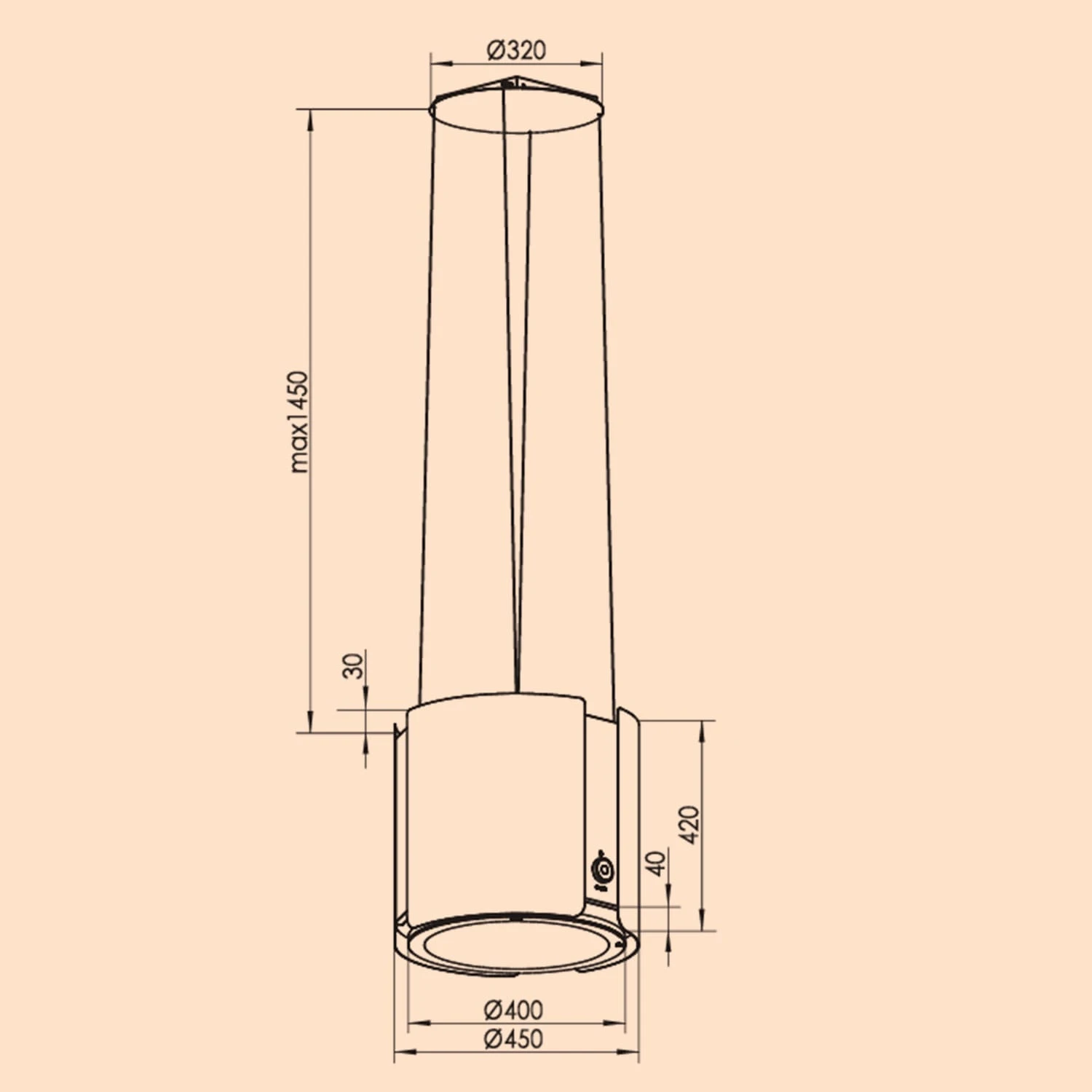 Skyfall Smart Inselabzugshaube Ø45cm Umluft 402m³/h LED