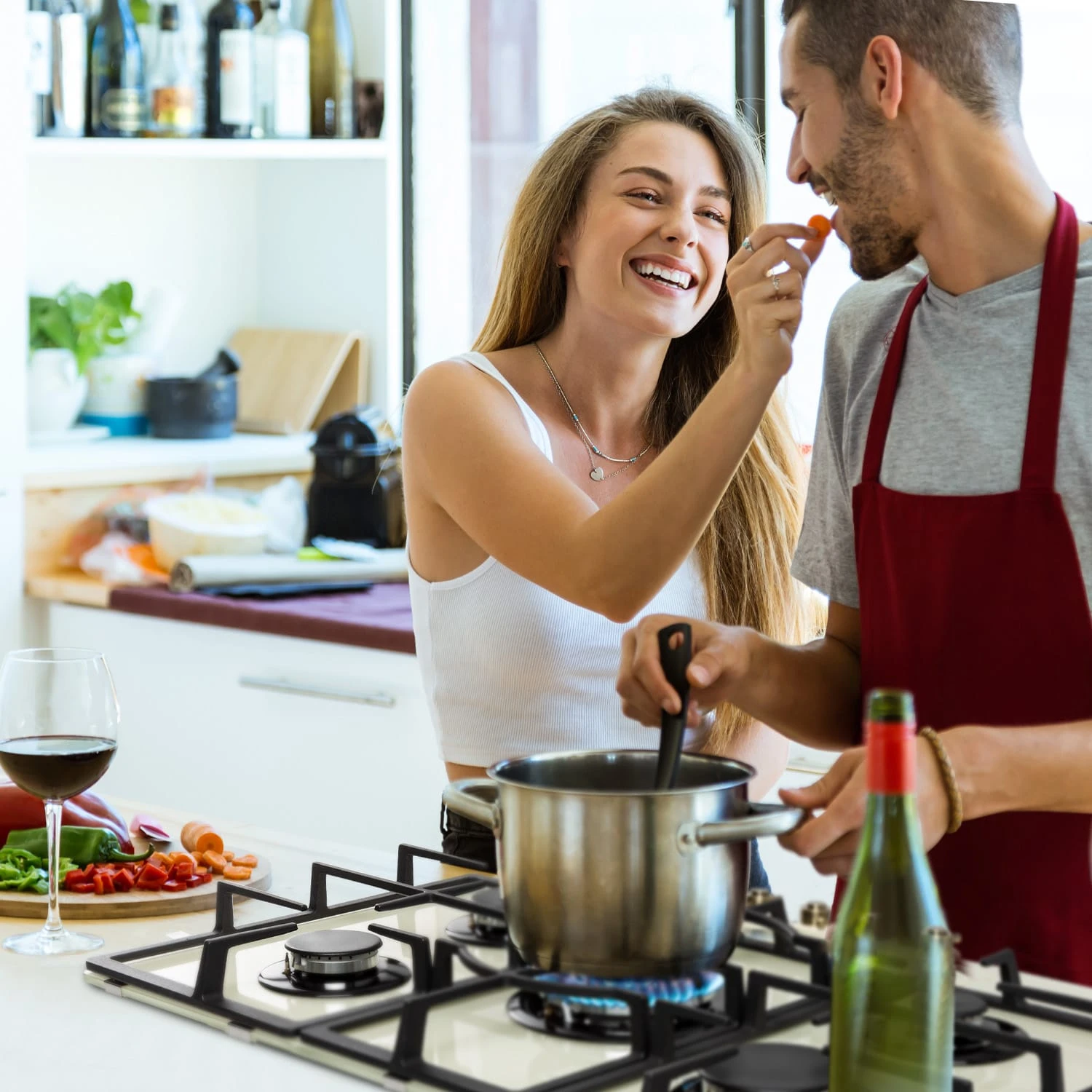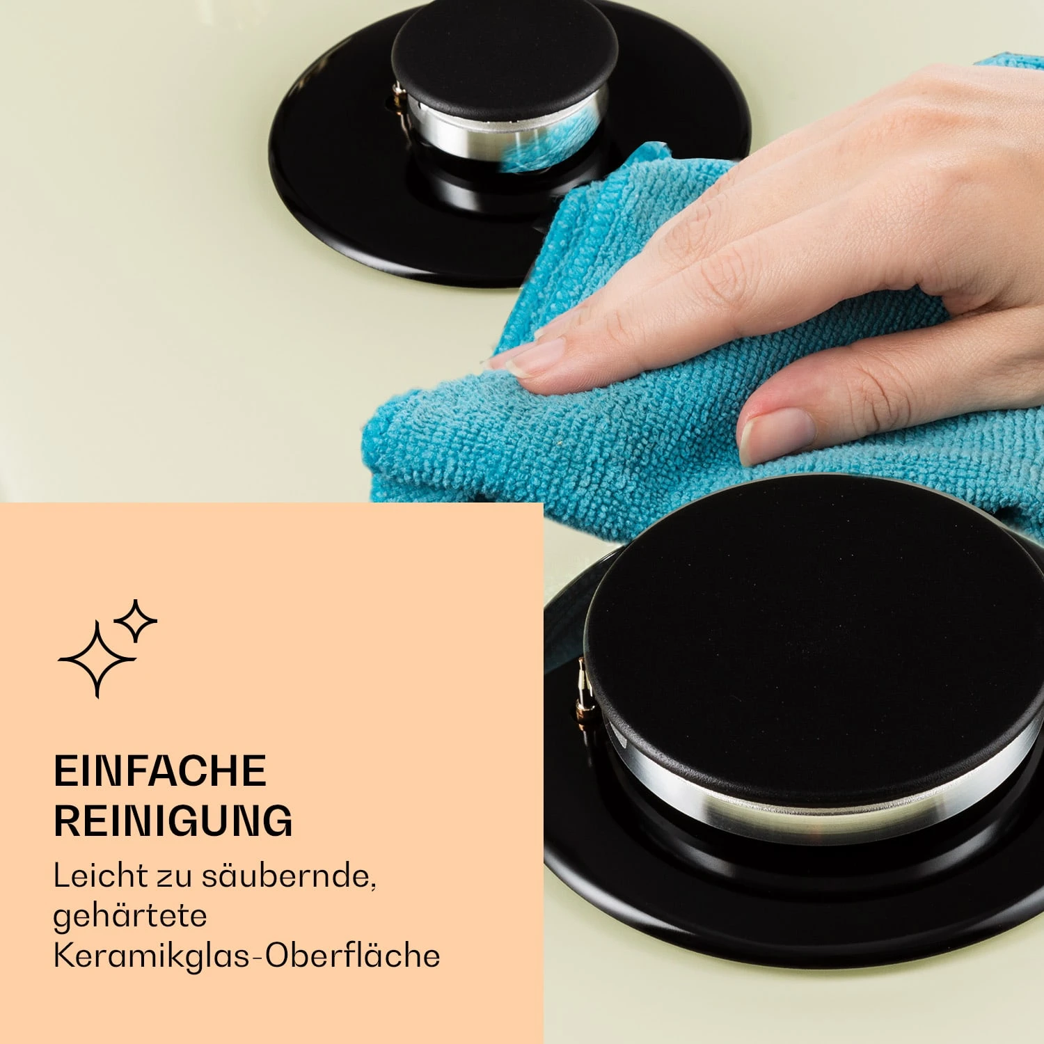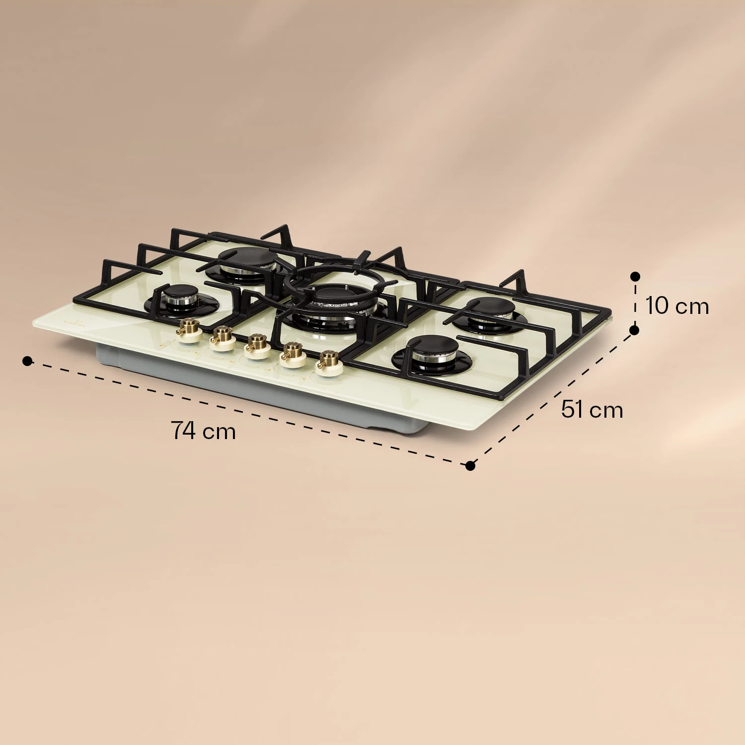 Auf dem geräumigen Klarstein Victoria 5 Gaskochfeld befinden sich fünf hochwertige Sabaf-Brenner, die mit einer Leistung von jeweils 3,6 kW, 3,0 kW und 1 kW sowie zweimal 1,75 kW ordentlich einheizen. Durch seine unterschiedlichen Brenner-Größen ist das Victoria 5 für jede erdenkliche Mahlzeit geeignet – dabei verteilen die Brenner die Hitze gleichmäßig in der Mitte und an den Rändern deines Kochgeschirrs, so wird alles perfekt gegart. Die Bedienung ist dank der selbsterklärenden Symbole an den großen im Retro-Design gestalteten Drehknöpfen absolut intuitiv, die Hitzezufuhr kann während des Kochvorgangs immer wieder direkt angepasst werden. Via SnapJetIgnition entzündest du die Flamme, somit ist kein zusätzliches Feuer nötig. Die drei abnehmbaren Kreuze aus massivem Gusseisen sitzen passgenau und kippsicher über den Flammen. Das Kochfeld ist mit einer gehärteten, pflegeleichten Keramikglas-Beschichtung versehen, die nicht nur gut aussieht, sondern auch besonders leicht zu reinigen ist.