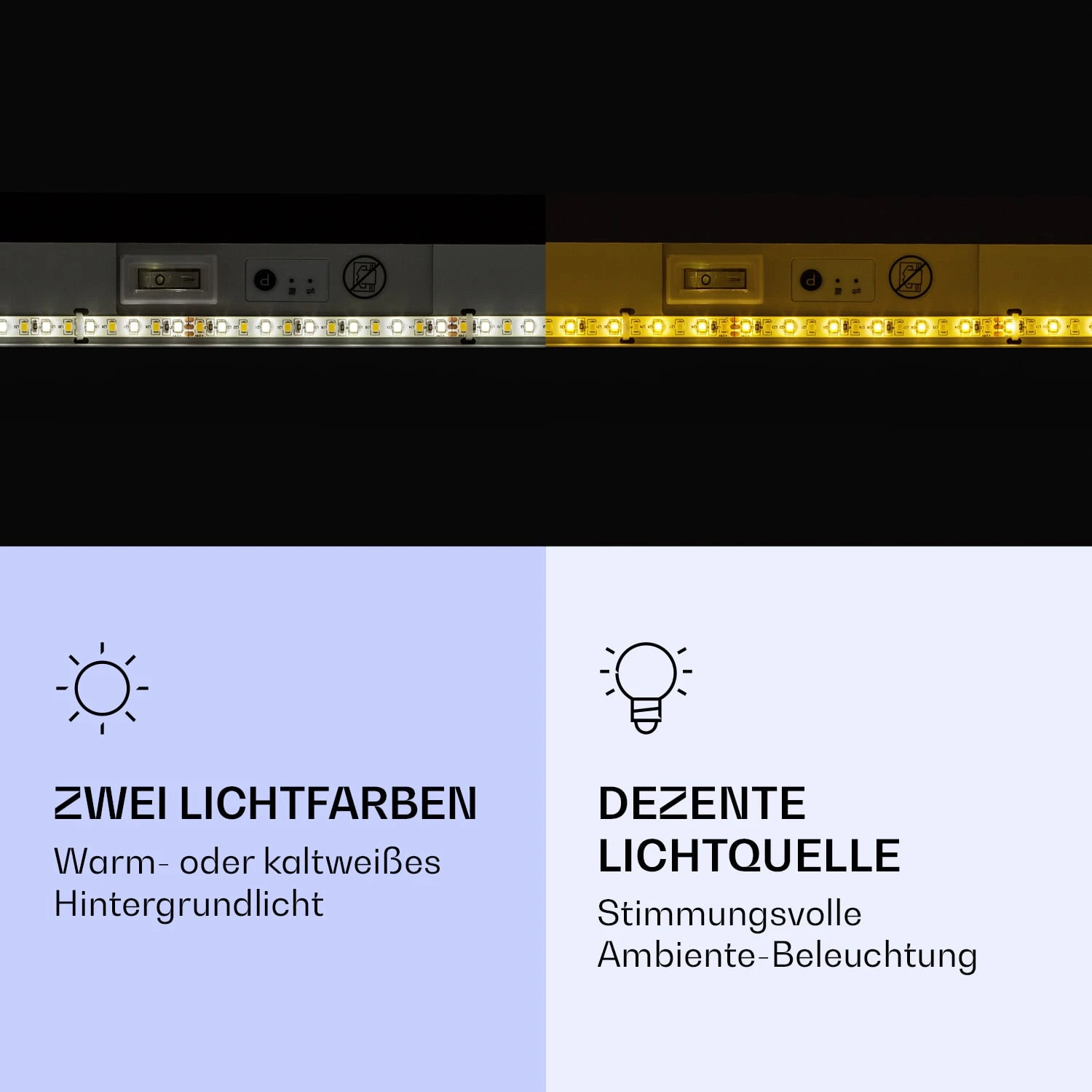 - 2 Beleuchtungs-Effekte: warm- oder kaltweißes Licht