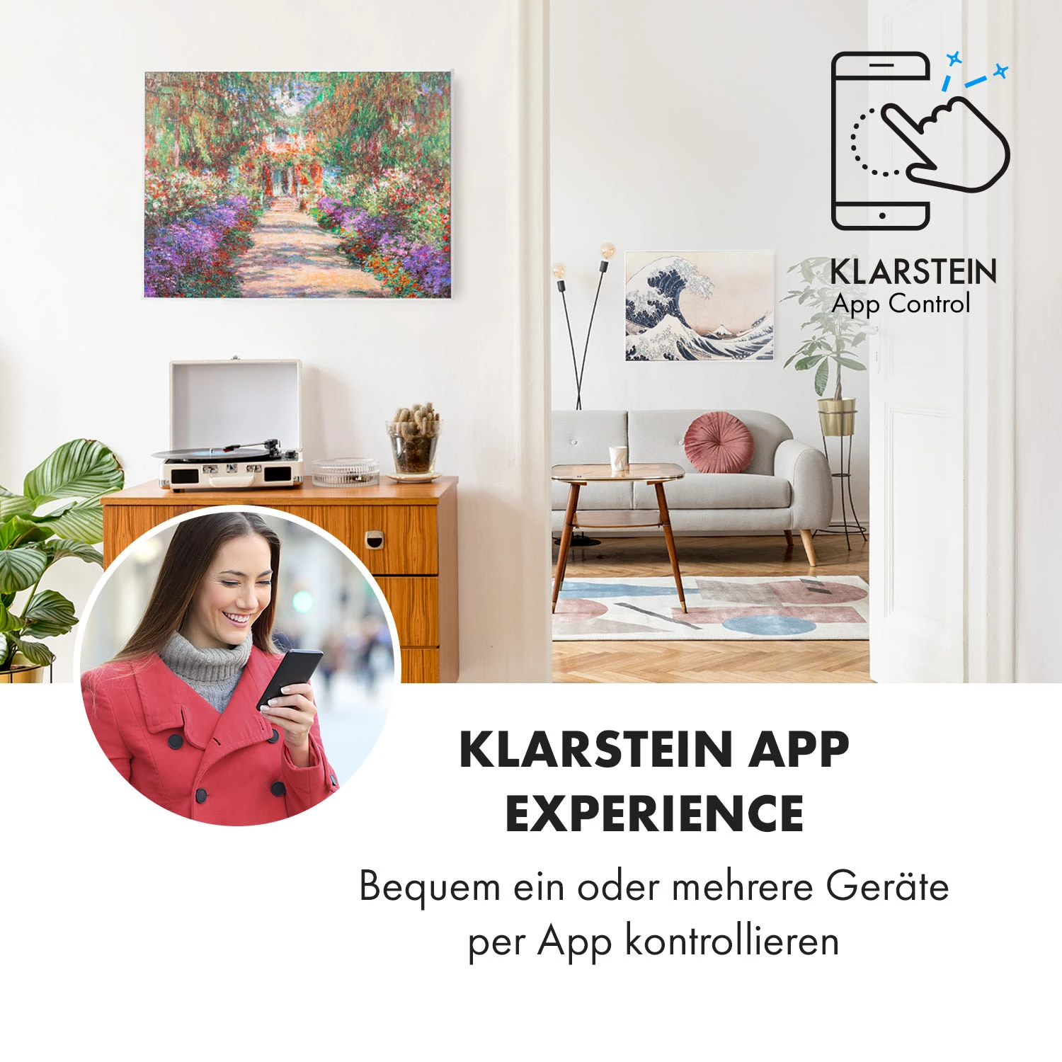 Die Klarstein Wonderwall Air Art Smart Infrarotheizung vereint hocheffiziente Heizleistung mit ansprechendem Design und innovativer Technik. Das 80 x 60 cm große Heizpanel kann direkt an die Wand gehängt werden, ist nur 5 cm hoch und kaum größer als ein gerahmtes Bild. Mit seiner starken 500 Watt Leistung und dank IR ComfortHeat verbreitet es für die menschliche Haut sehr angenehme Wärme, ohne sich in der Luft zu verlieren. Durch die Infrarot-Technologie ist das Heizpanel äußerst energieeffizient und umweltfreundlich, da ganze 98 % der Leistung in Wärmestrahlung umgewandelt werden. Smarte Funktionen zur Steuerung per App, Thermostat, Auto-Abschaltfunktion und Schutzklasse IP44 runden die Innovation gekonnt ab.