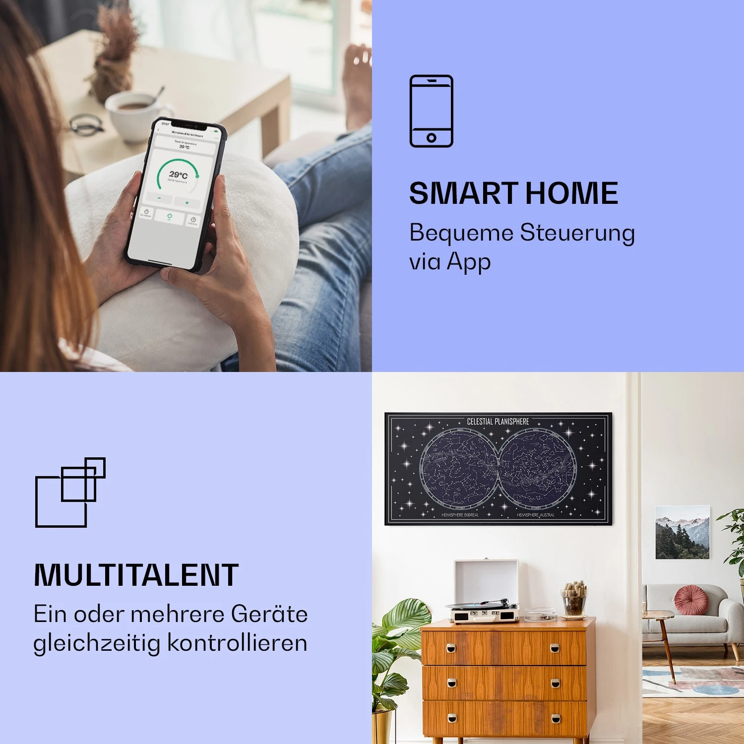 Wonderwall Air Art Smart Infrarotheizung Himmelskarte 120x60cm 700W